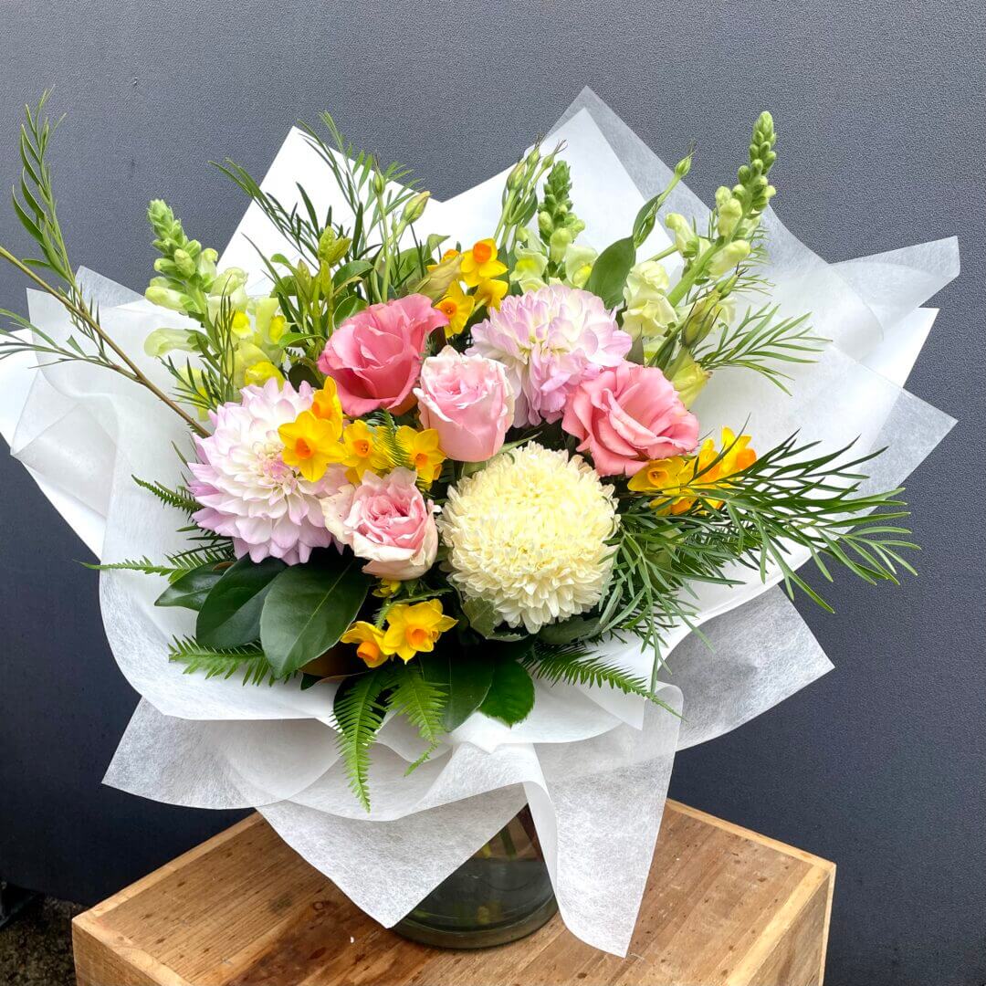 Presented in our quality and eco friendly wrapping. Utilising a selection of kraft paper, fibre wrap, and our signature ribbon our team knows how to perfectly embellish your bouquet. All bouquets are delivered in a water source to ensure freshness of blooms.