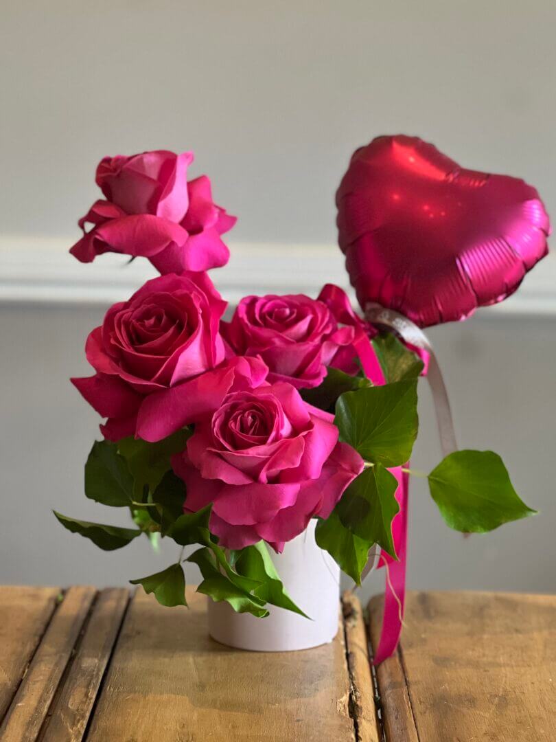 Adorned with a sweet heart shaped balloon and lashings on satin ribbons, this gorgeous arrangement is sure to impress your Love.